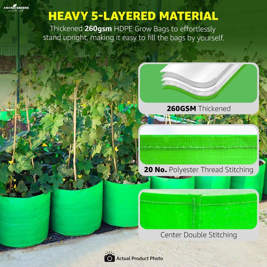 Suitable vegetables can be planted in this size grow bag : Creeper Vegetables like Bottel Gourd, Bitter Gourd, Spong Gourd, etc.