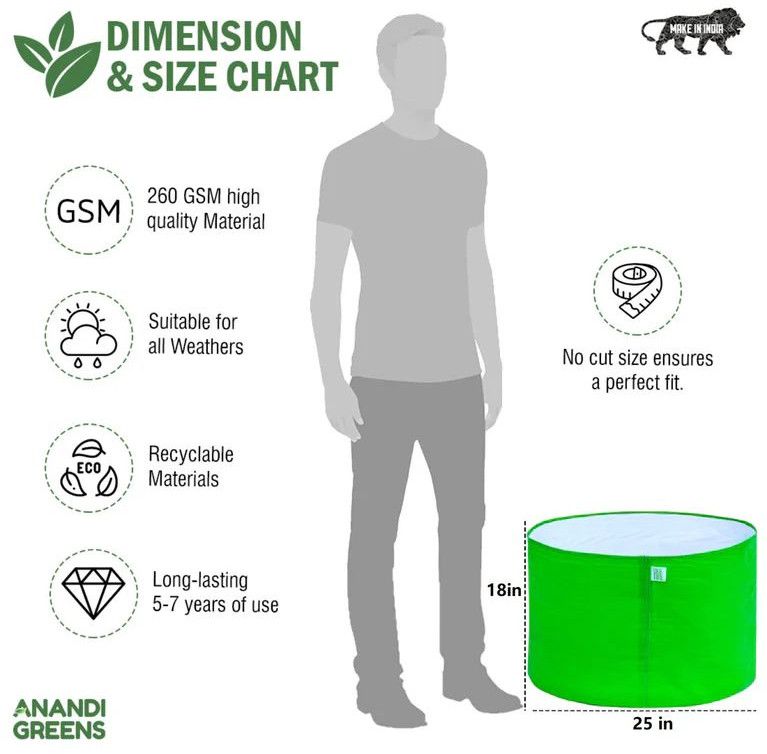 Suitable vegetables can be planted in this size grow bag : This grow bag is ideal for Chilly, Brinjal, Tomato, Lady's Finger, Cluster Beans, Lemon Grass, Radish, Beans, Agathi Leaves, Palak Spinach, Carrot, Cauliflower, Beetroot, Cabbage, Rose etc